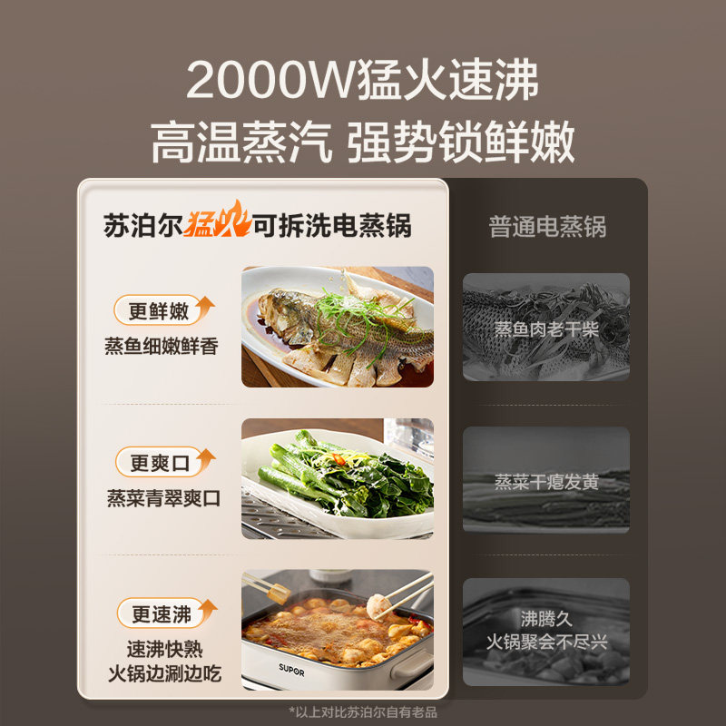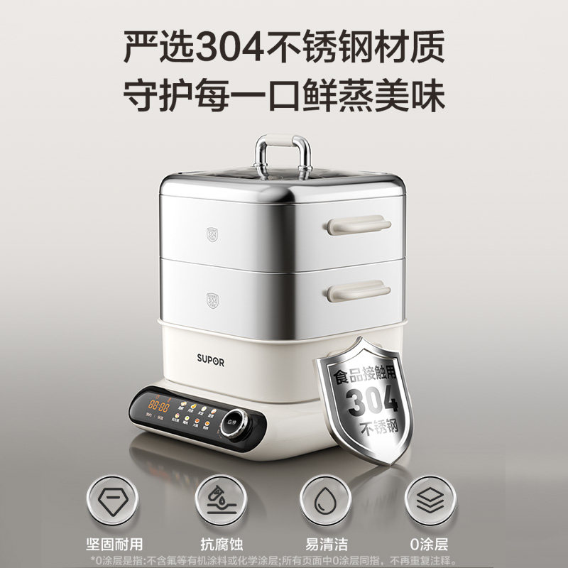 苏泊尔电蒸锅多功能家用三层蒸锅0涂层304不锈钢可拆洗蒸煮一体锅