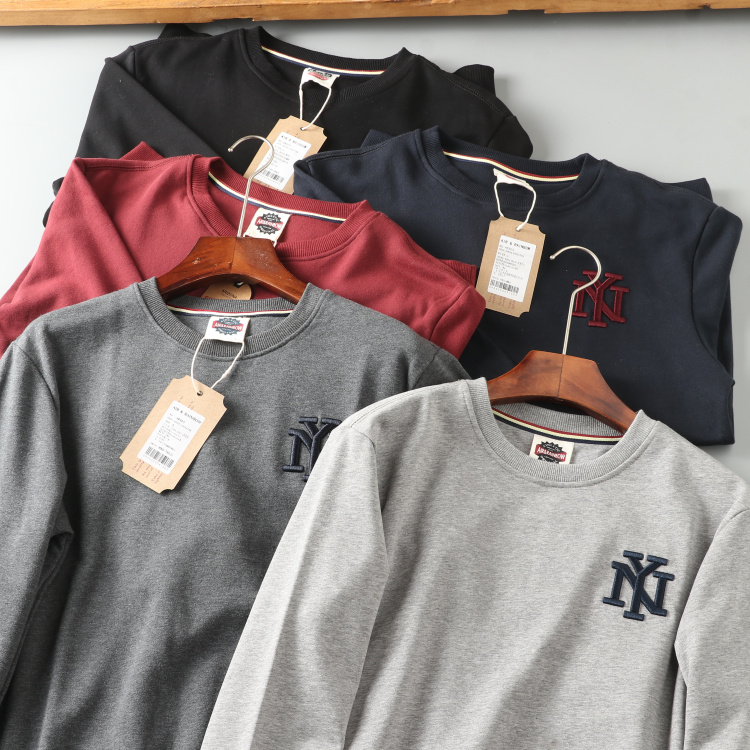 立体刺绣!82棉春季水洗男士圆领套头休闲百搭毛圈卫衣可情侣打底