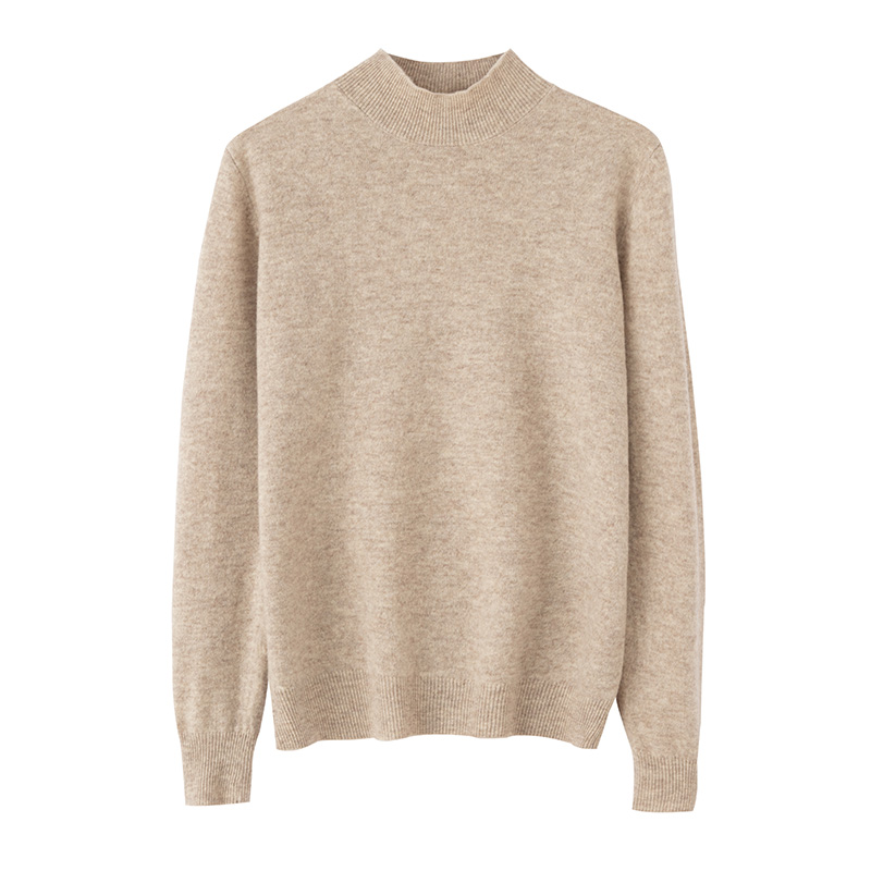 长袖半高领100羊绒针织打底毛衣