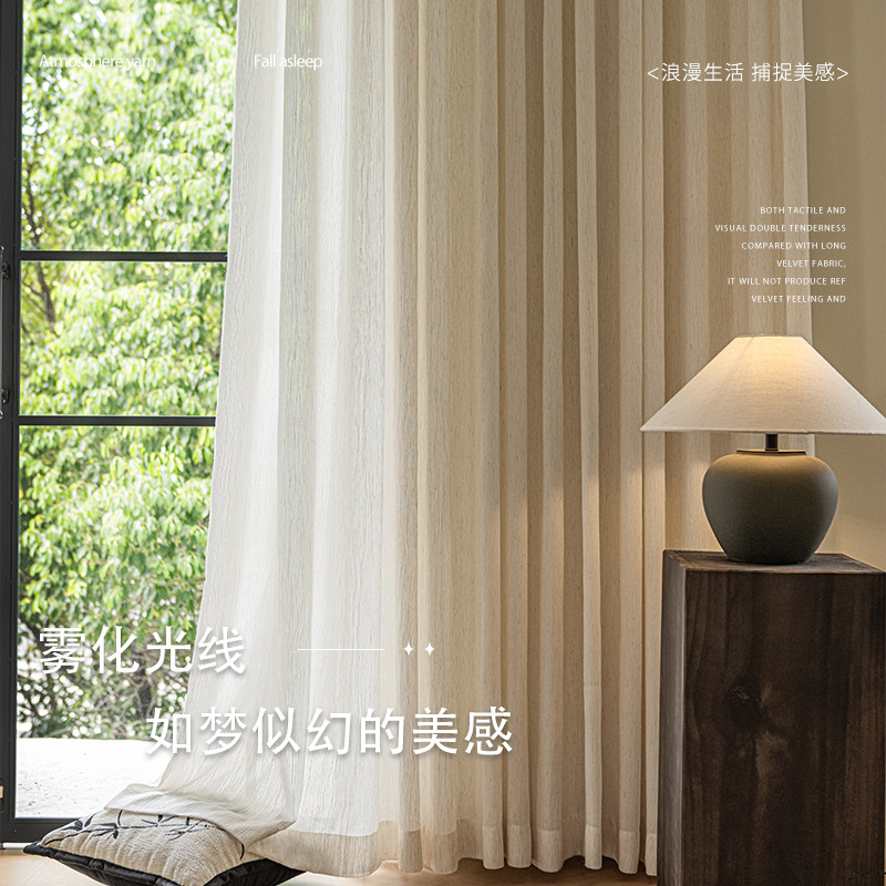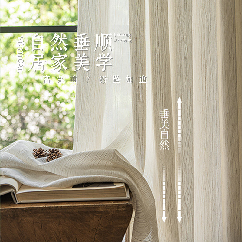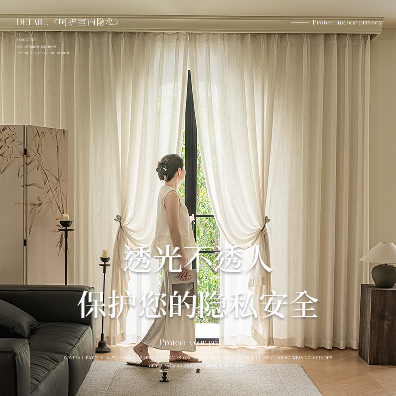 扶风纱窗帘纱帘2025新款透光不透人客厅阳台高级感中古风亚麻纱布