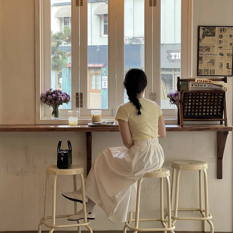 The Barnnet现货25夏款韩国东大门基础简约纯色圆领紧身短袖T恤女