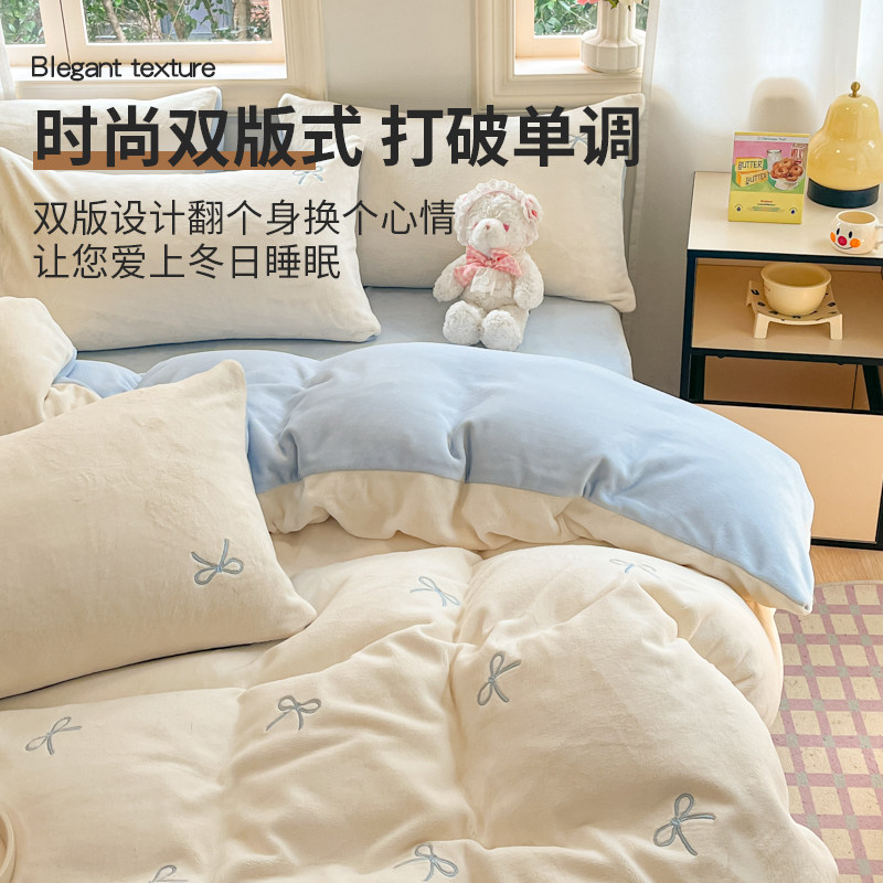 牛奶绒四件套加厚保暖无印良品