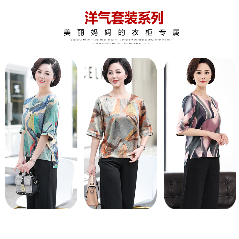 妈妈夏装短袖T恤50岁60岁老人2025新款中老年人女洋气上衣奶奶装