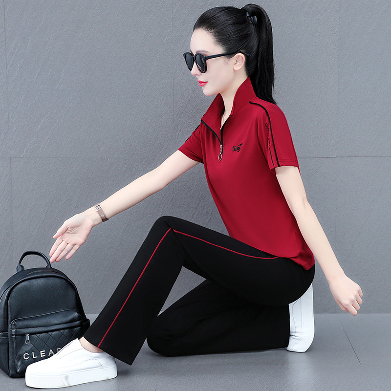 官方正品休闲运动服套装冰丝透气女士夏季薄款2025新款跑步中妈妈
