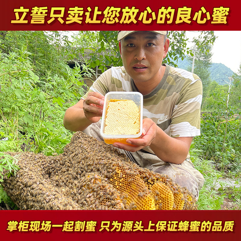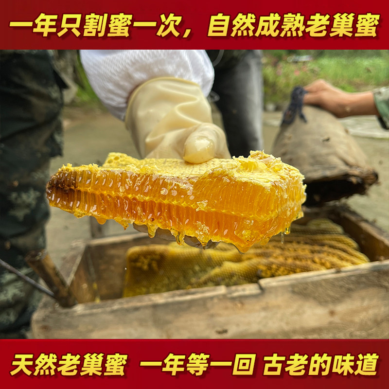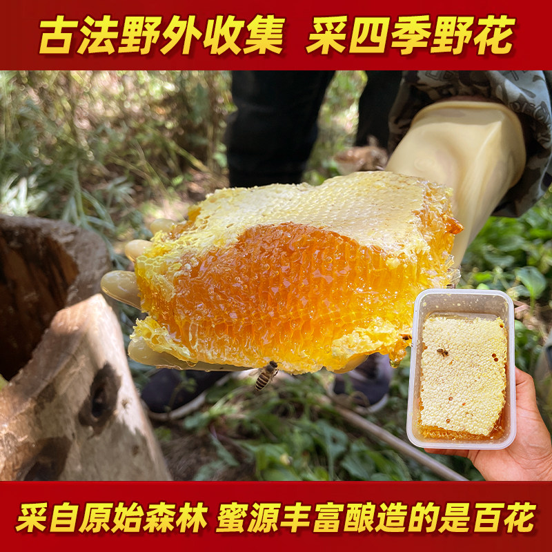 蜂巢蜜嚼着吃盒装500g野生百花土蜂蜜农家自产老巢蜜巢块