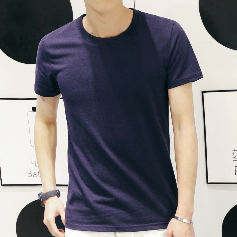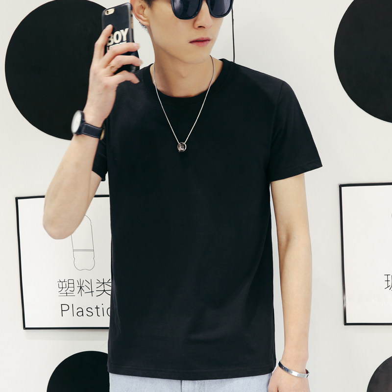 男士短袖t恤圆领纯棉打底衫潮流男装韩版修身衣服半袖纯色