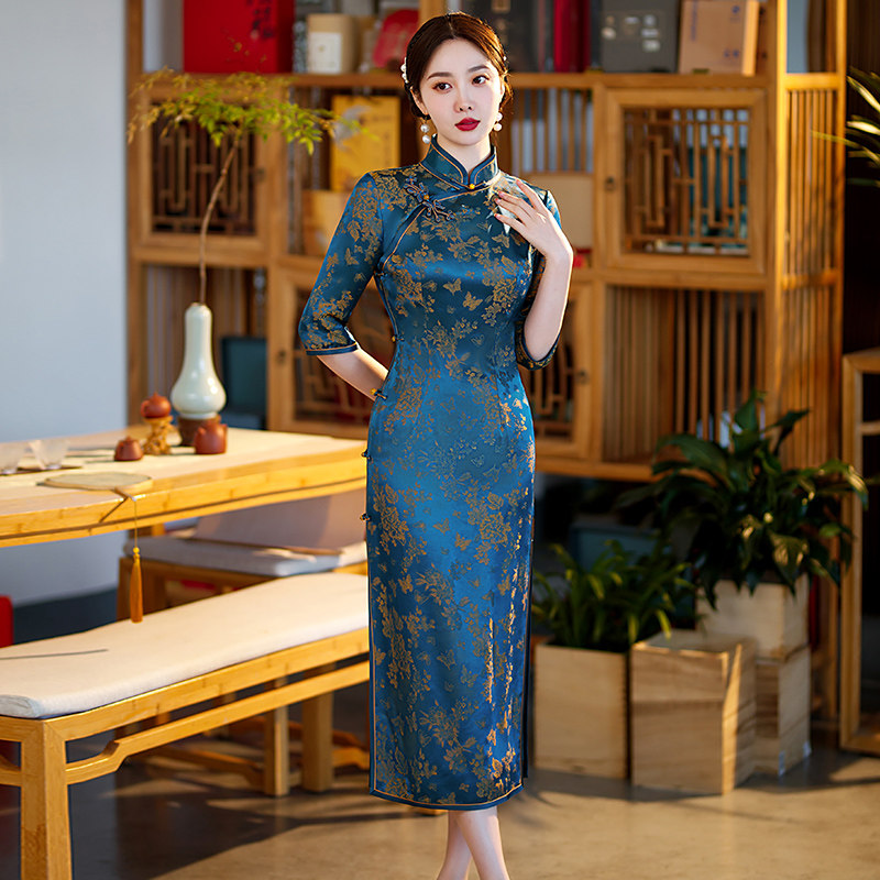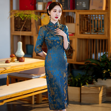 高贵桑蚕丝全开襟旗袍新款2025年秋季内外真丝中年女妈妈礼服国风