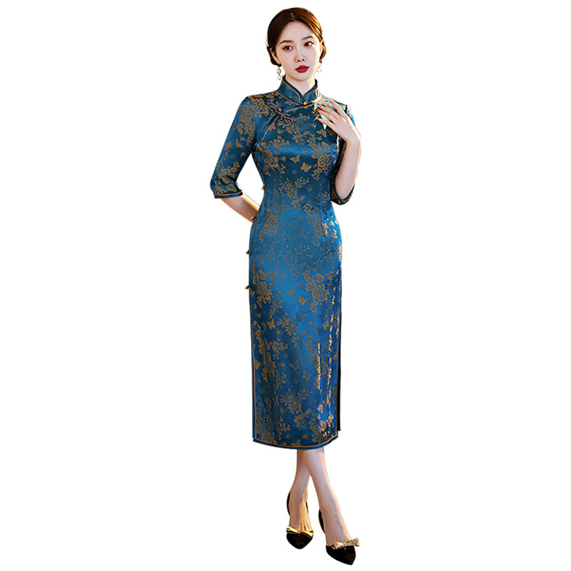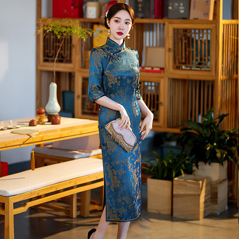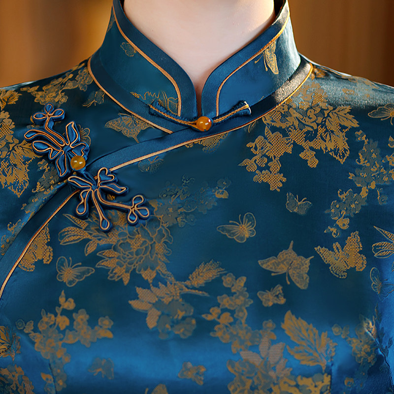 重磅桑蚕丝全开襟旗袍秋新款妈妈