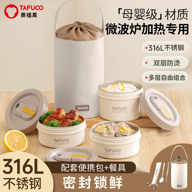 日本泰福高便当盒316不锈钢4层手提饭盒粥桶可微波炉加热保鲜饭盒