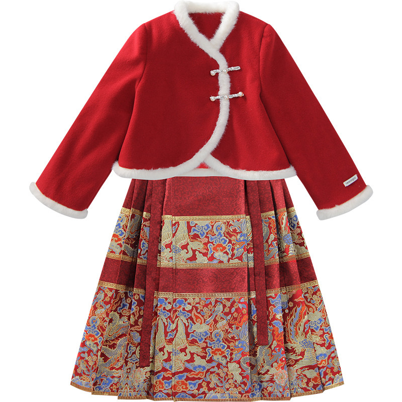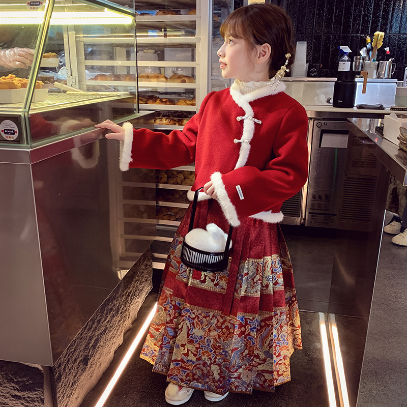 女童汉服中国风套裙马面裙套装冬装2025新款洋气儿童新年装拜年服