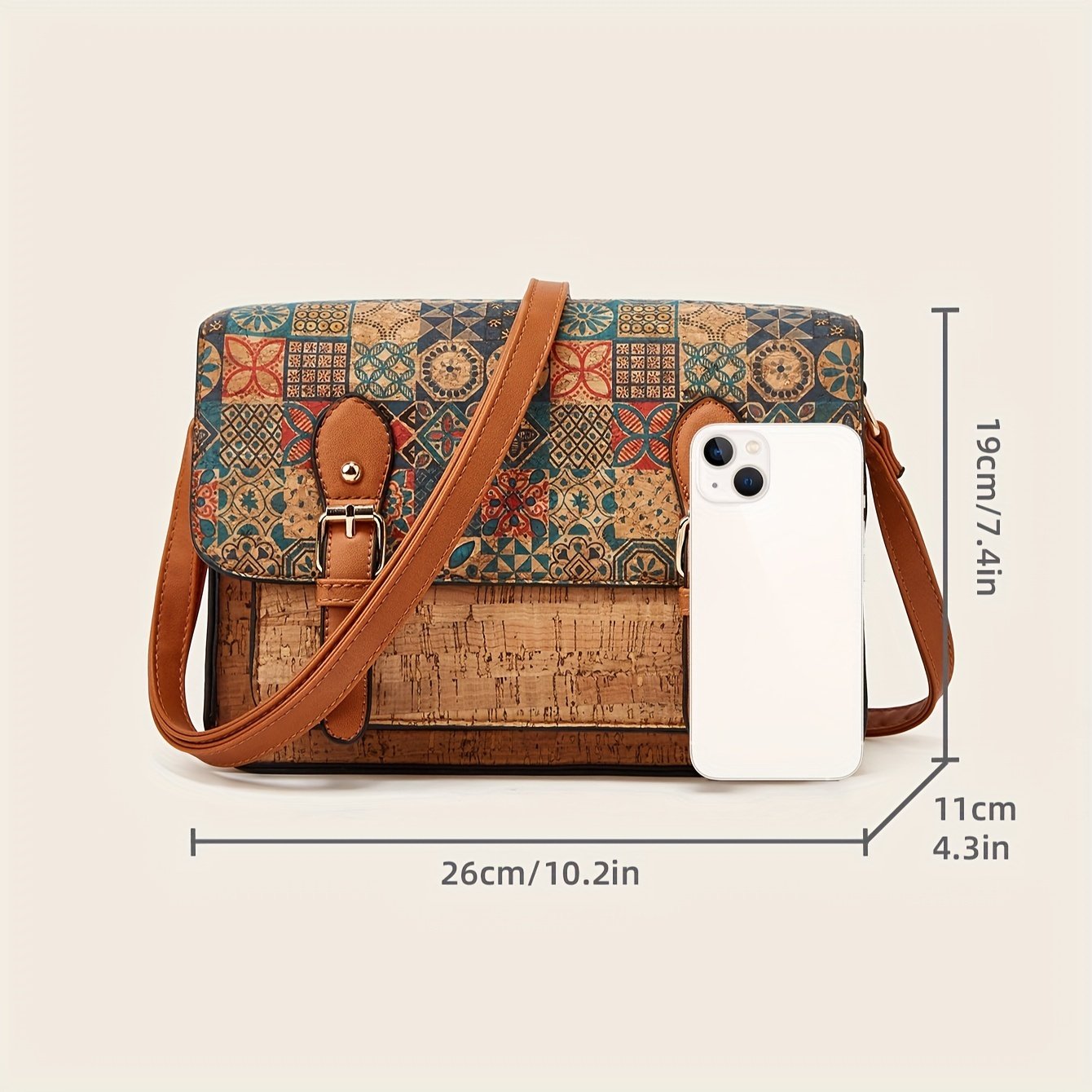 树皮复古花卉印花斜挎包手机包邮差包,PU皮革斜挎包