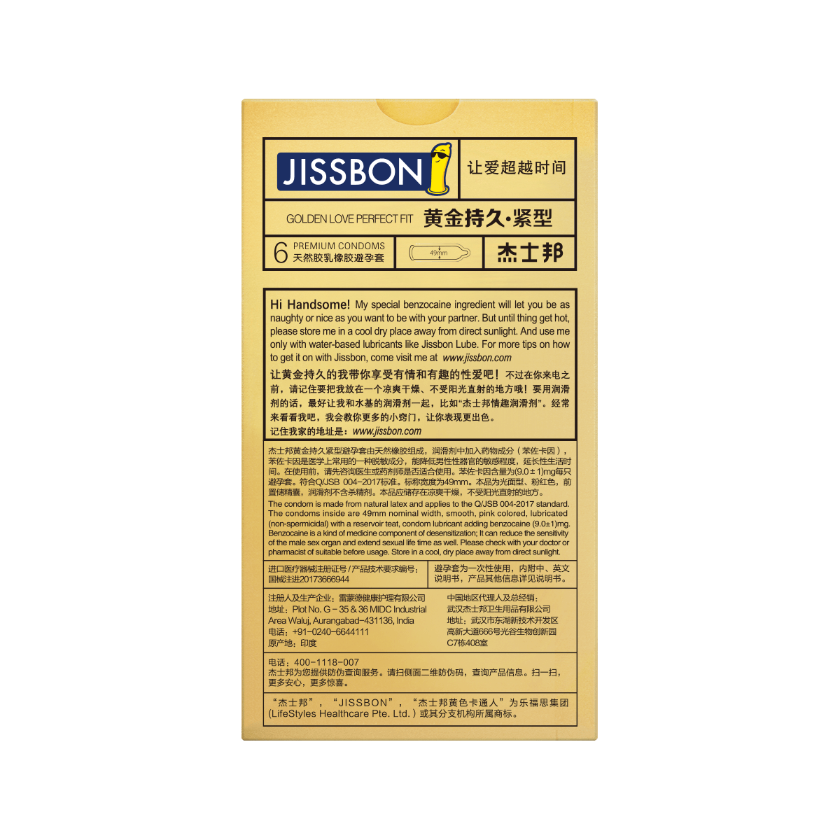 杰士邦小号延时套黄金持久避孕套玻尿酸安全套男用紧型超薄套RZY