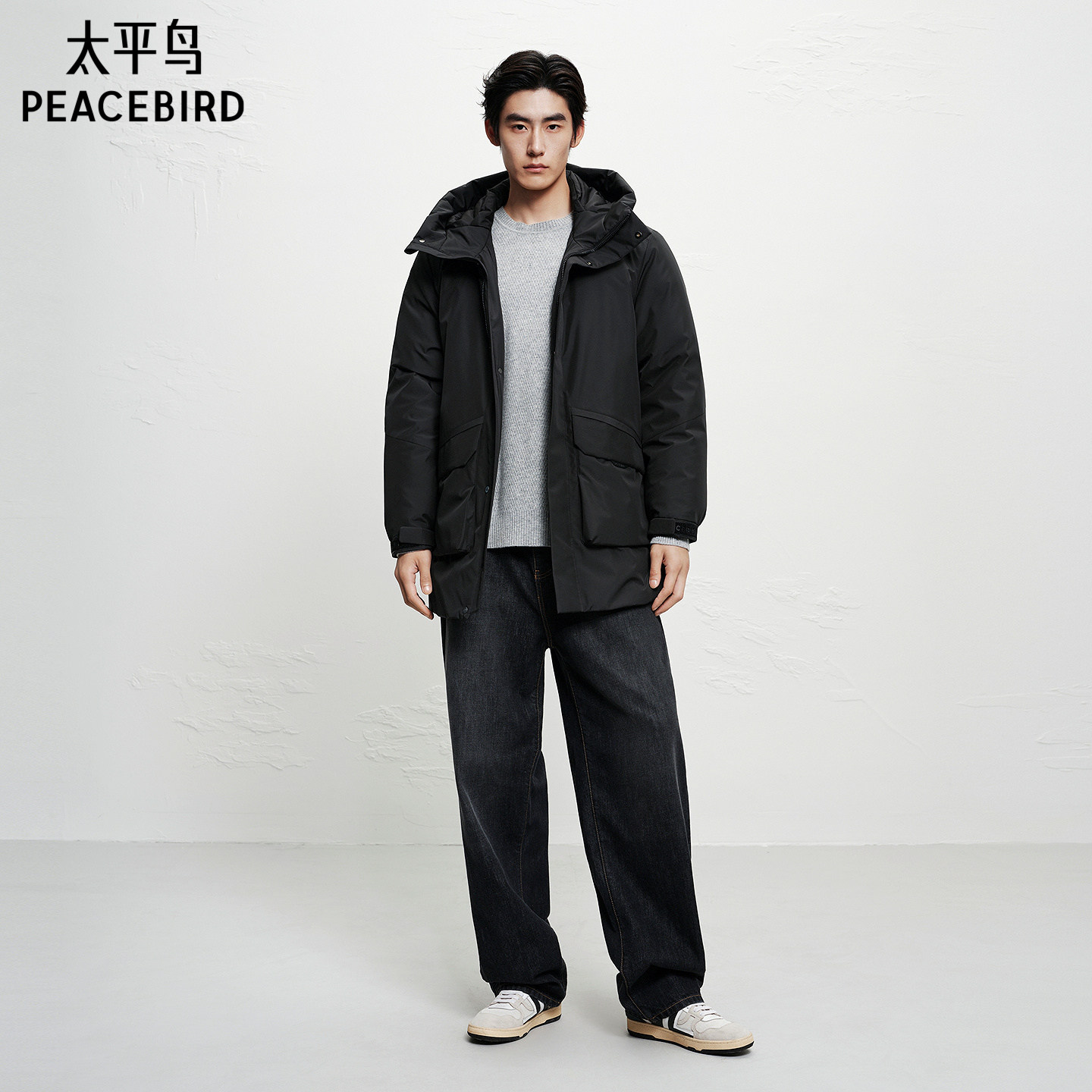 【防泼水】太平鸟男装 防寒派克服25年冬季新款中长款连帽羽绒服