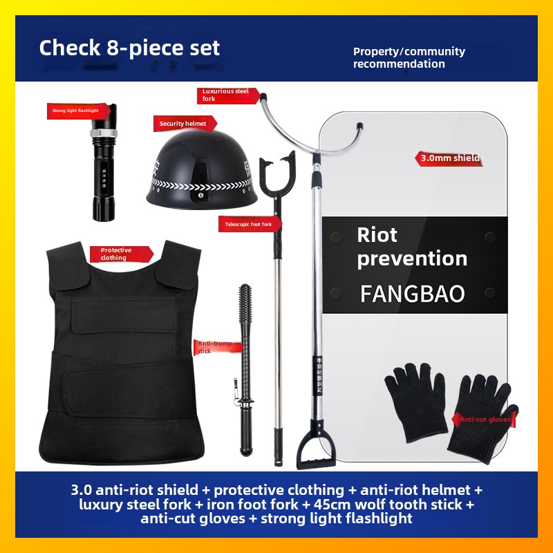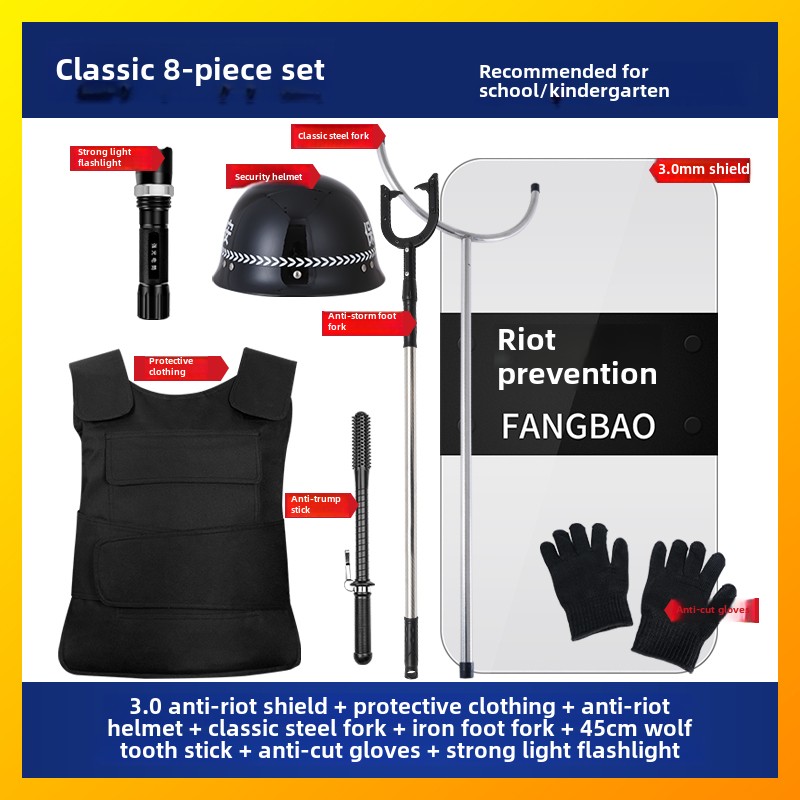 学校幼儿园安保器材八件套防爆盾牌头盔钢叉反恐防暴套装保安装备