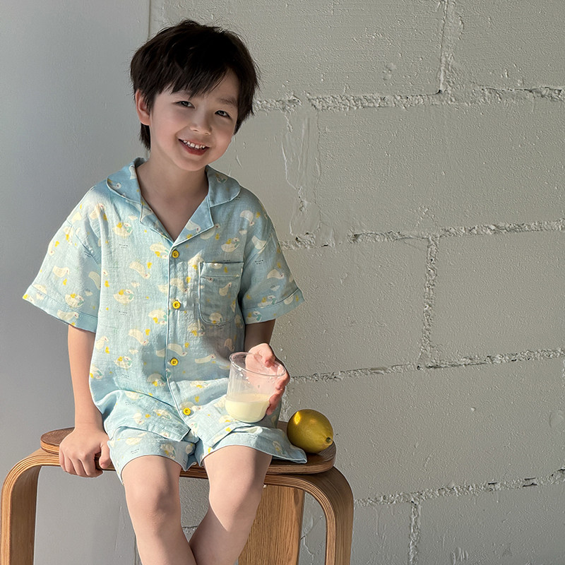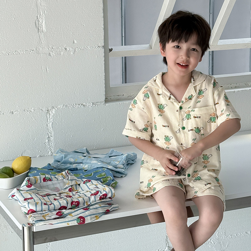 男童水果动物印花短袖开衫短裤家居服套装儿童夏装薄款空调服睡衣