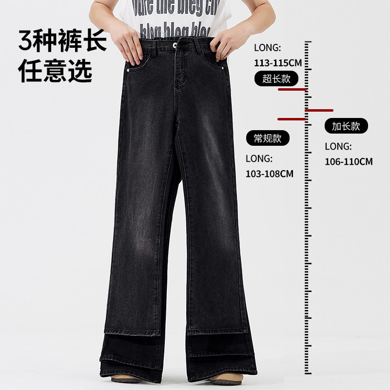 高个子微喇牛仔裤男秋春宽松青少年裤子加长vibe美式高街弯刀长裤