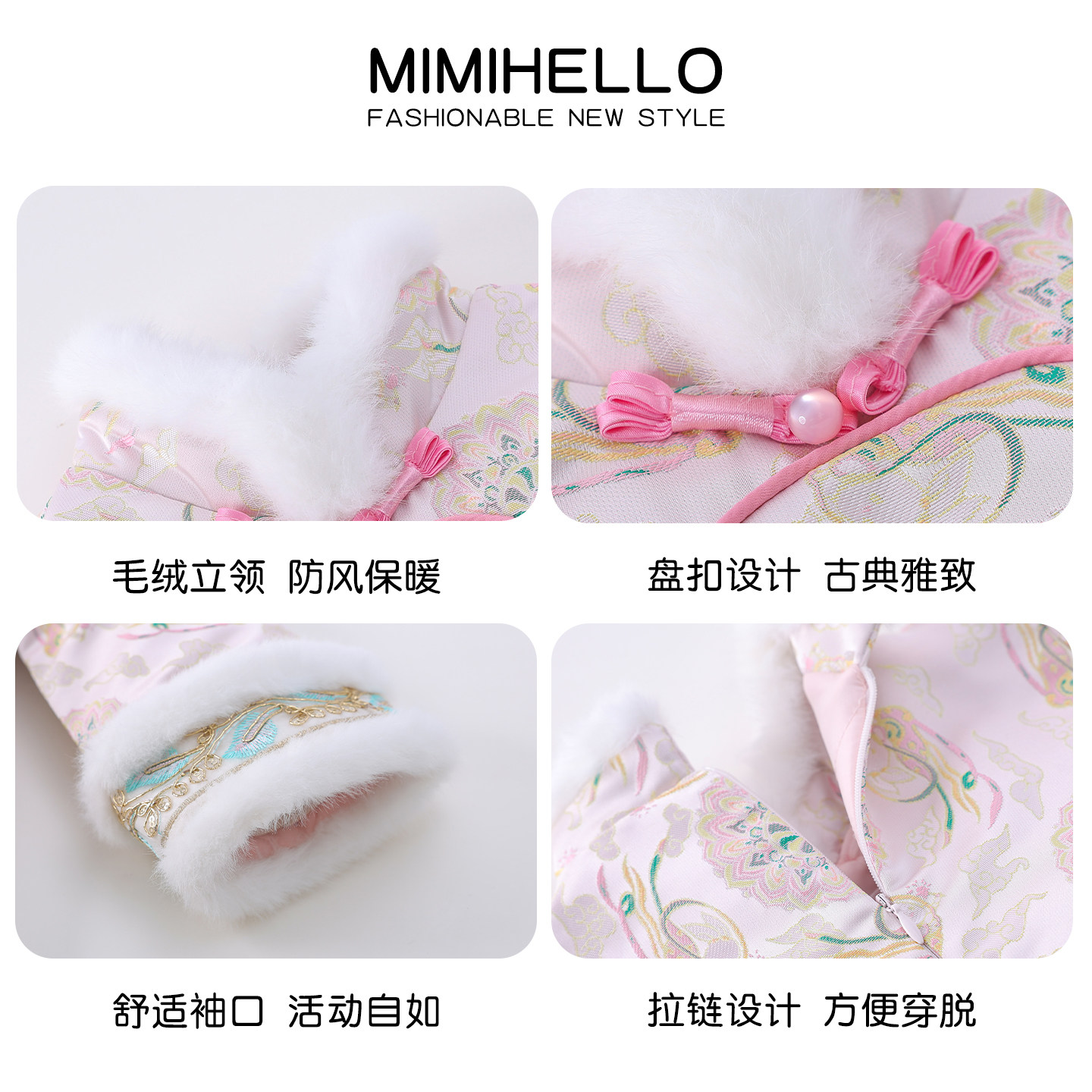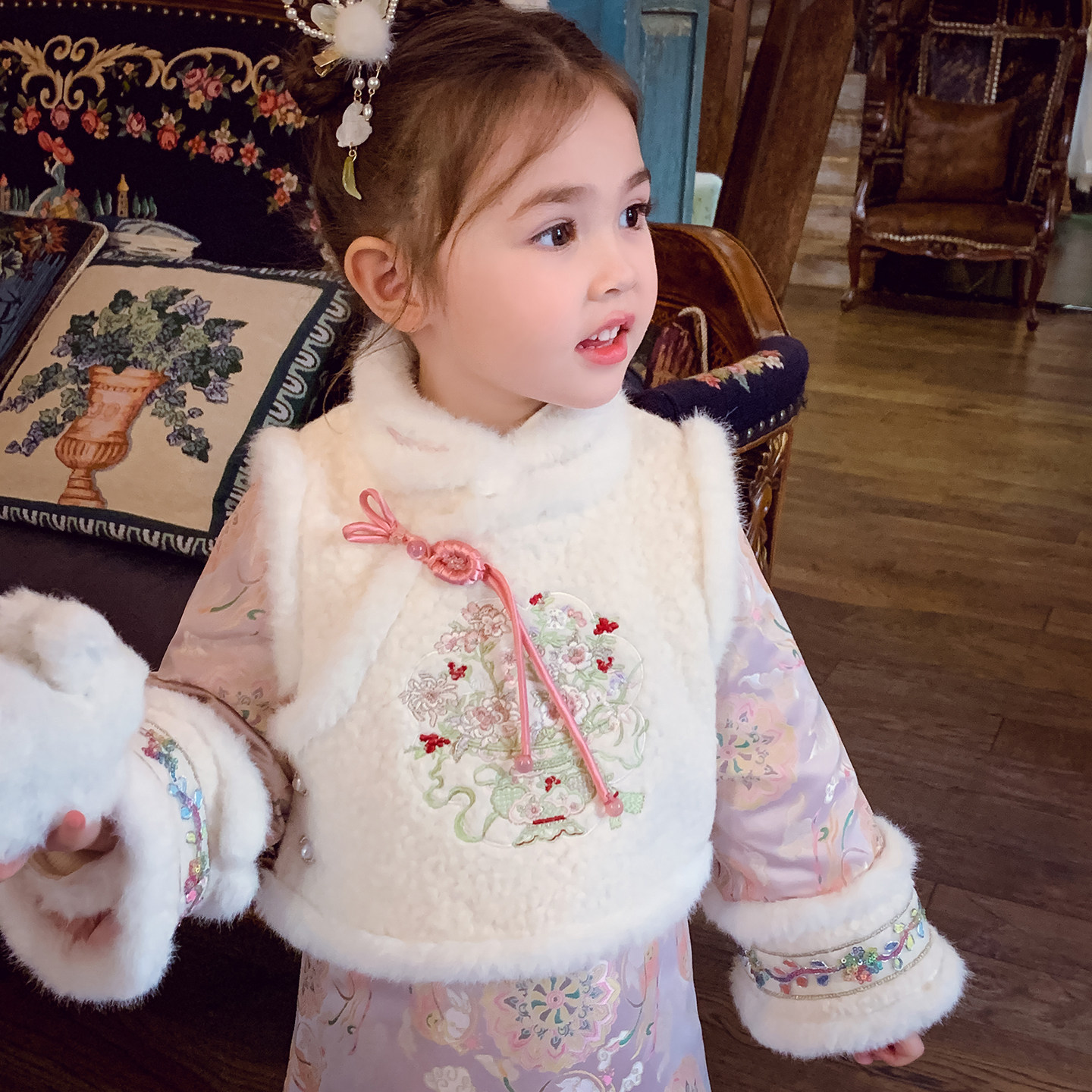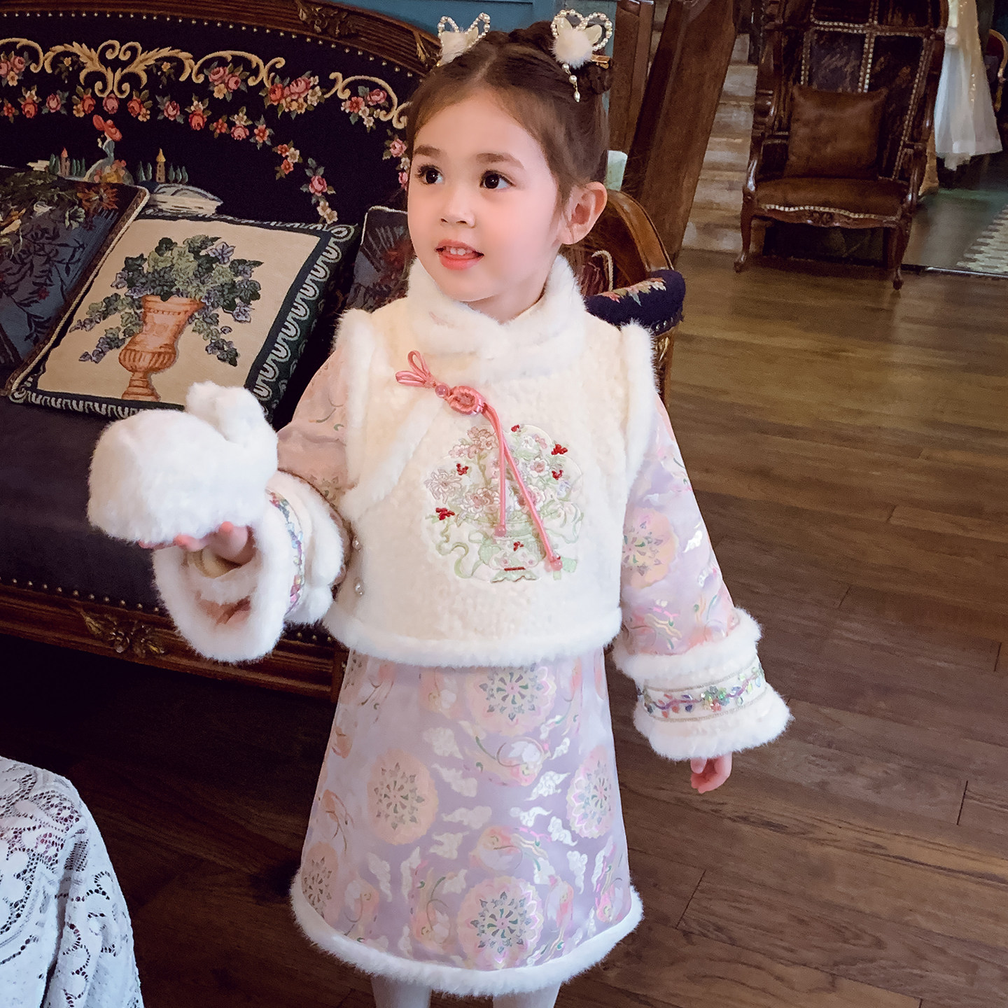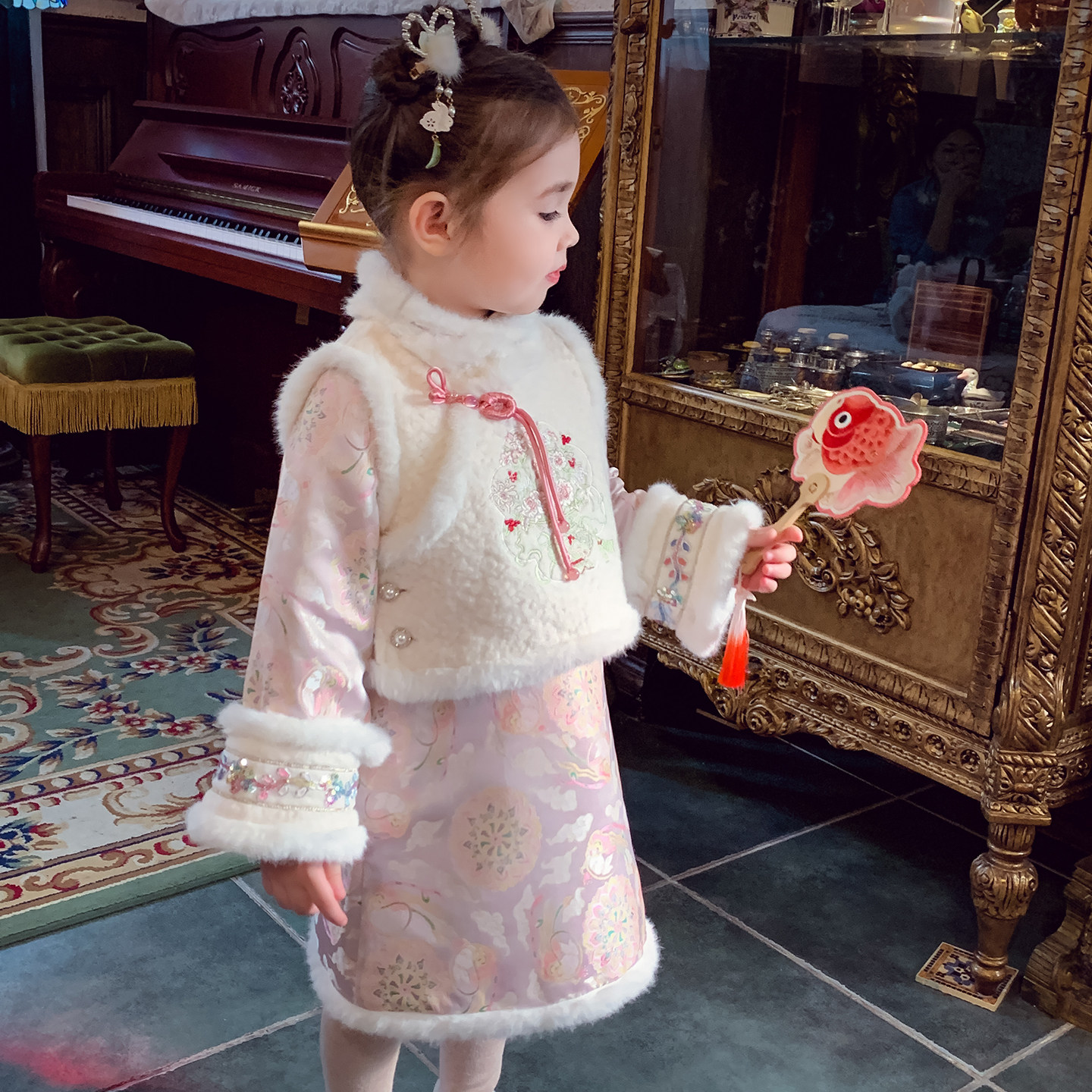 女童新中式国风套装冬装2025新款加绒旗袍连衣裙子马甲背心两件套
