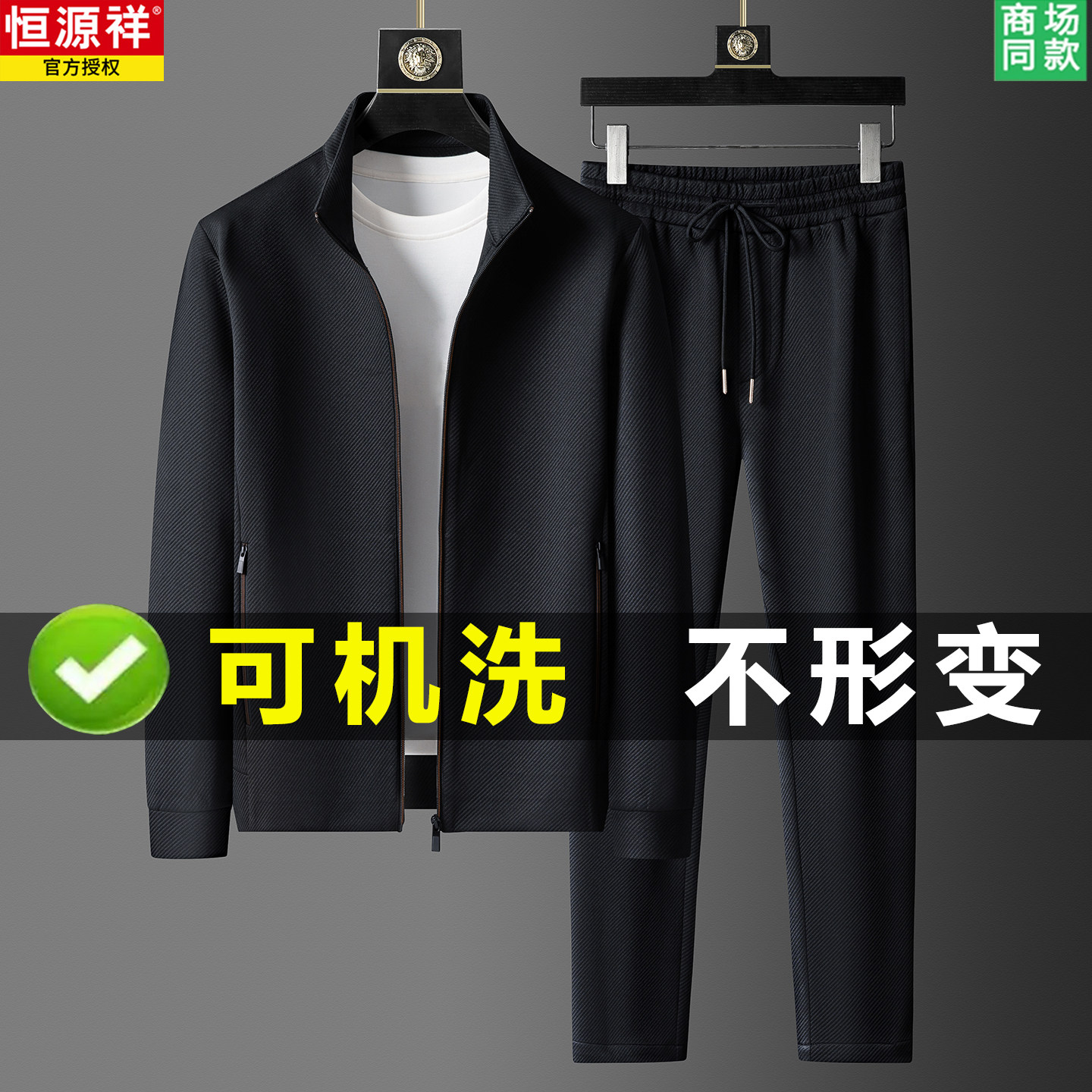 恒源祥男士立领卫衣开衫运动套装男春秋休闲两件套宽松大码跑步服