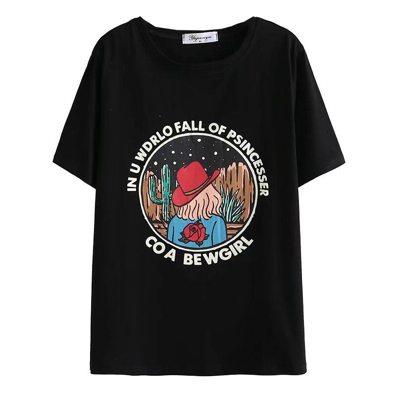 宽松卡通女孩印花短袖T恤