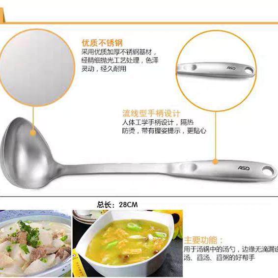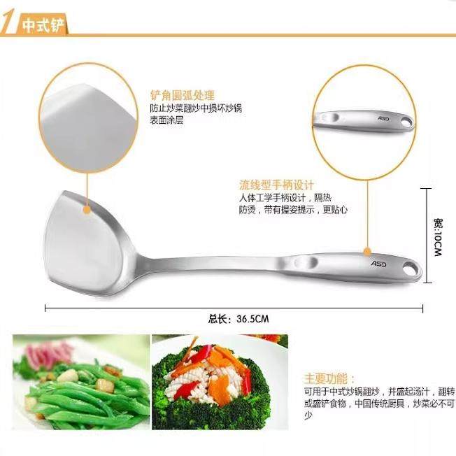 爱仕达不锈钢锅铲套装铲勺汤勺炒菜铲子厨房厨具全套家用五件套装