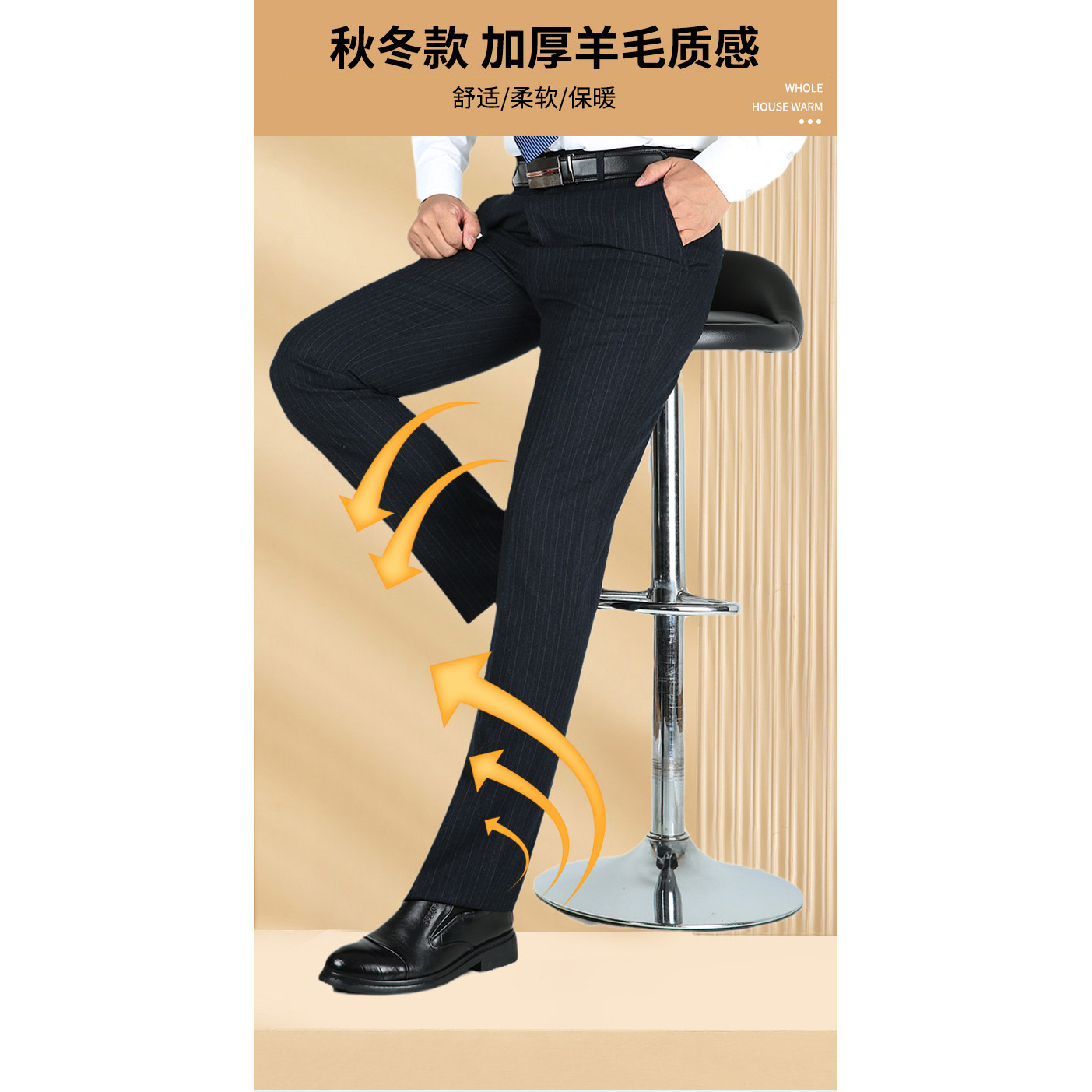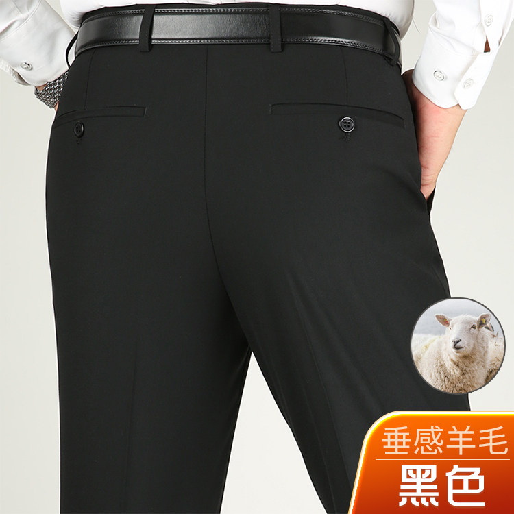 虎都羊毛西裤男冬季厚款中年直筒高腰深裆商务免烫西装休闲男长裤