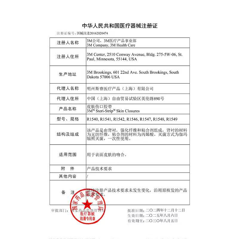 3M皮肤伤口免缝胶带R1547减张贴伤口拉合胶布抑制疤痕增生贴R1542