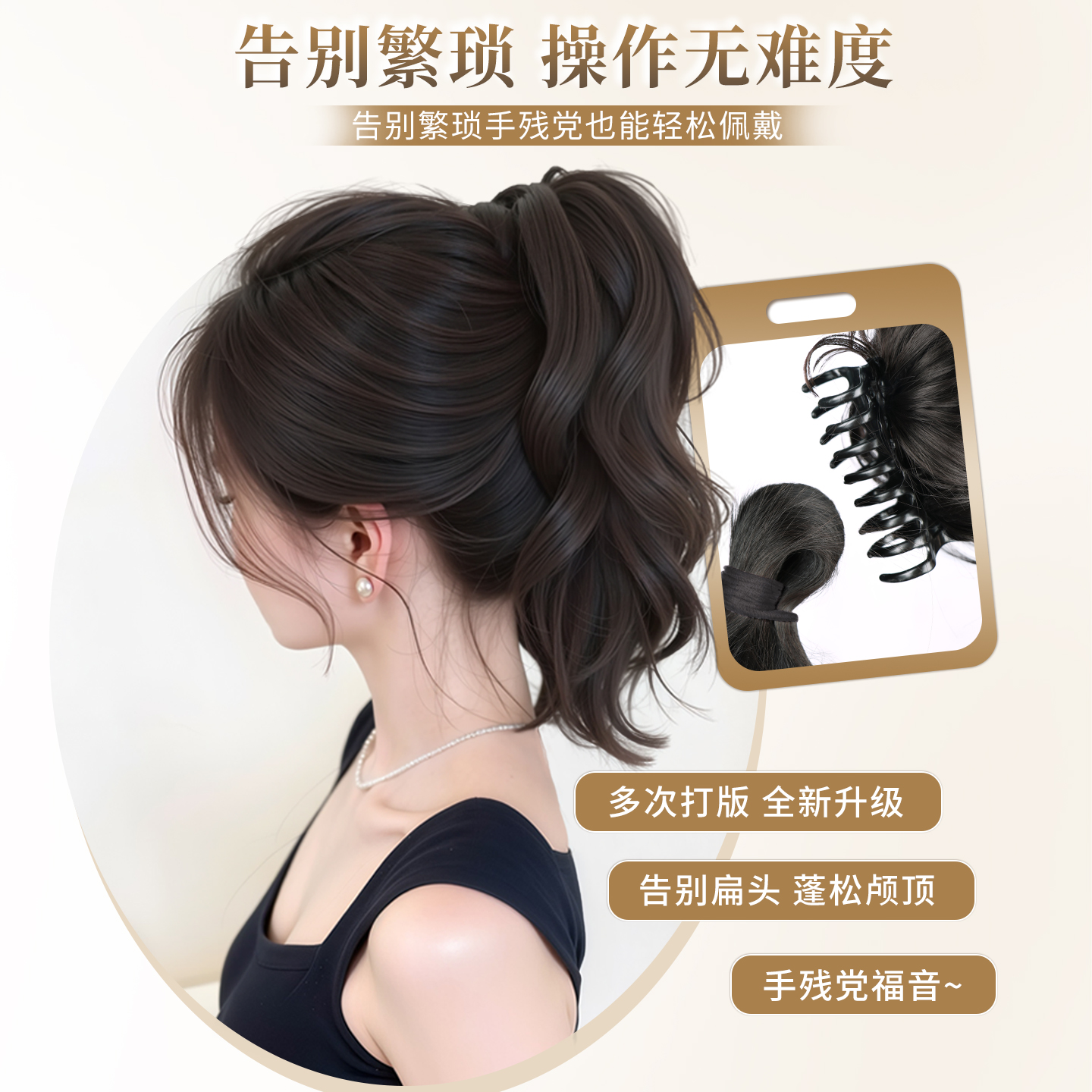 假发辫子女抓夹仿真发卷发高马尾自然增发量高颅顶喷泉瀑布马尾辫
