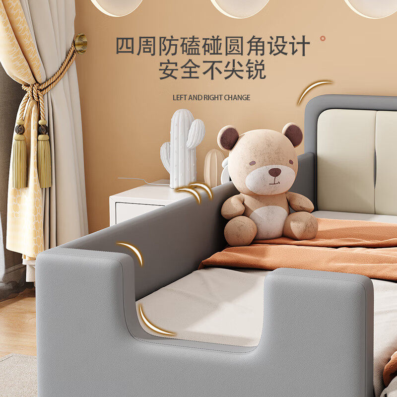 婴儿床儿童床拼接床加宽边床小床宝宝皮质软包大床可调节高度定制