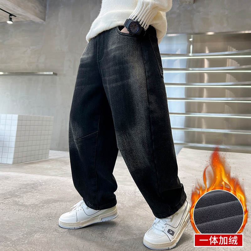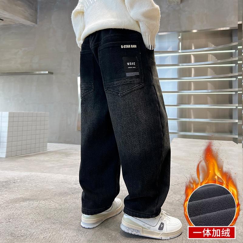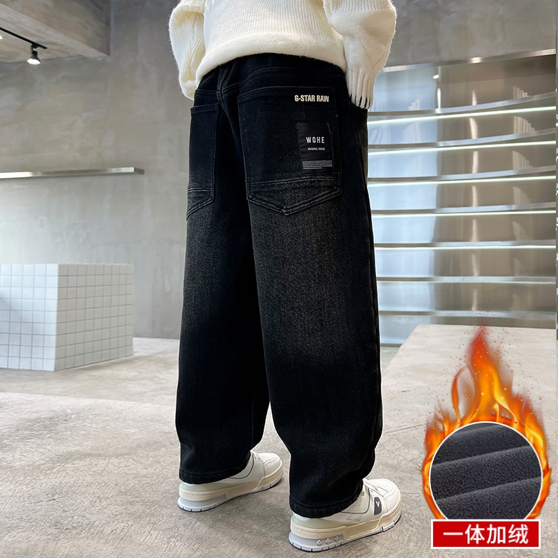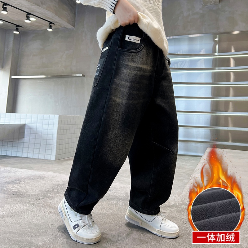 儿童装男童加绒裤子秋冬2025新款中大童加厚男孩冬装保暖牛仔裤潮