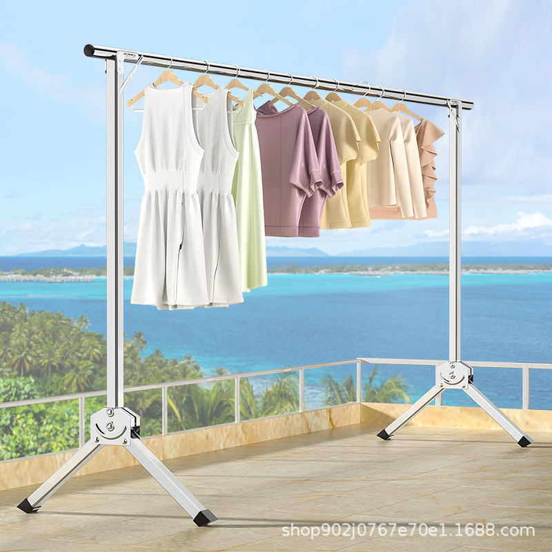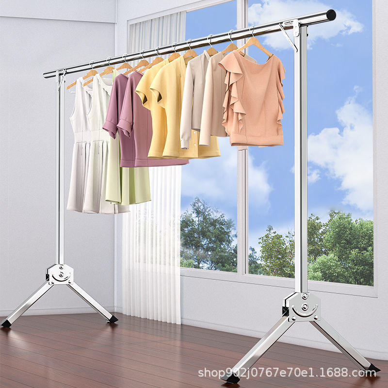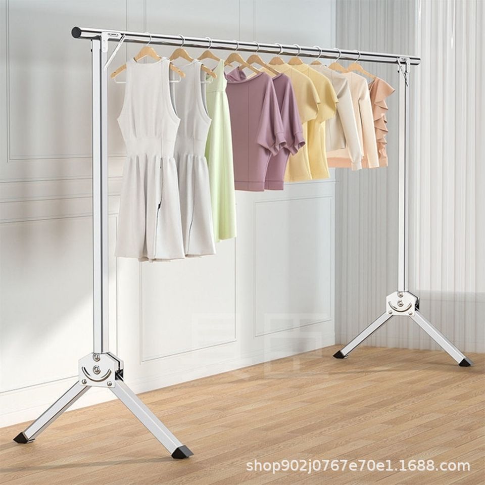 不锈钢单杆晾衣架落地折叠收缩晾衣架晒衣架折叠室内卧室挂衣架