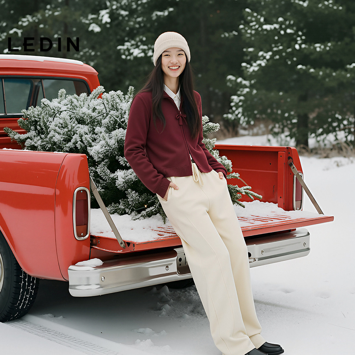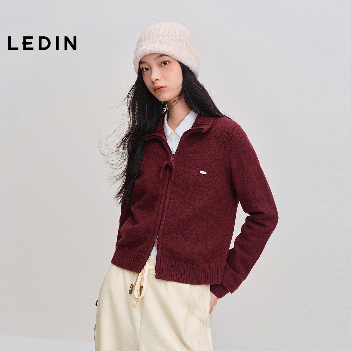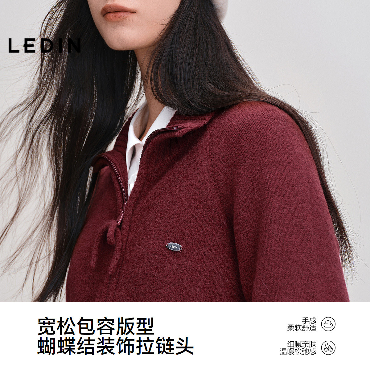 乐町蝴蝶结拉链外套毛衣女防风立领25年冬季新款正肩合体针织