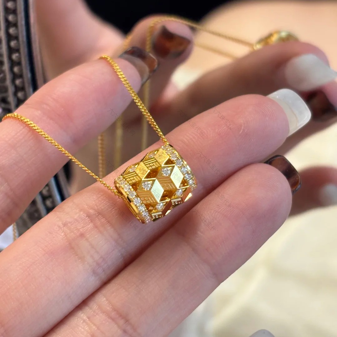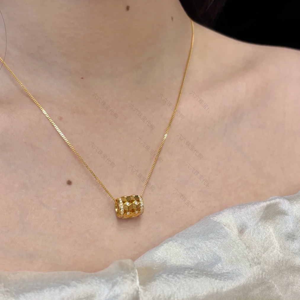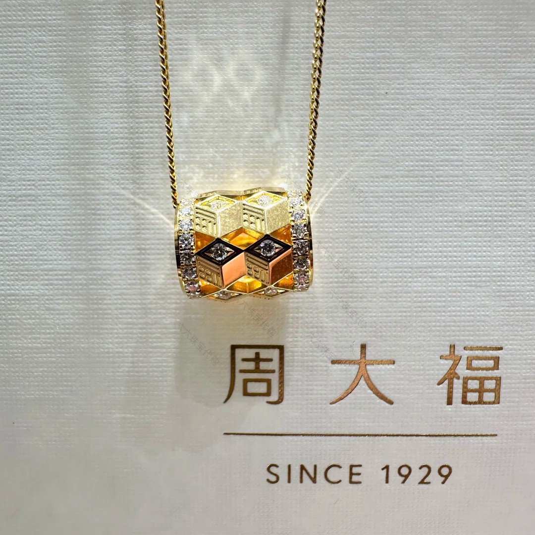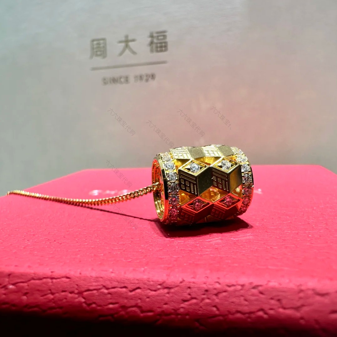 周大福代购 传福系列黄金立体福字钻石足金女项链 新款正品RU2353