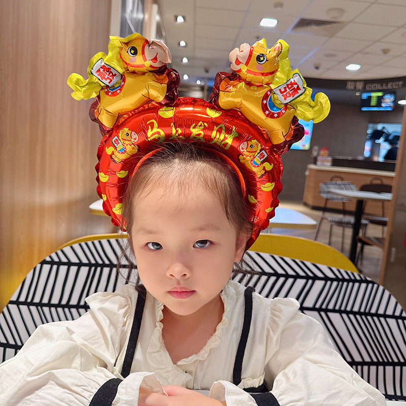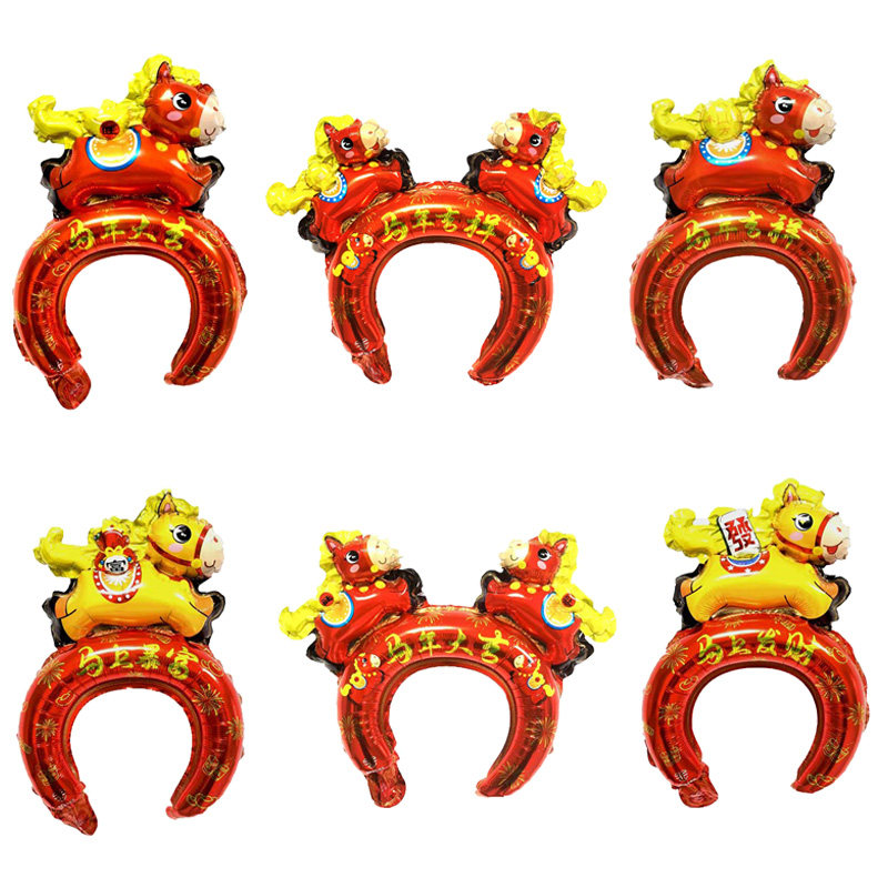 2026元旦马年本命年红色中国风儿童搞怪年会表演道具发箍铝膜气球