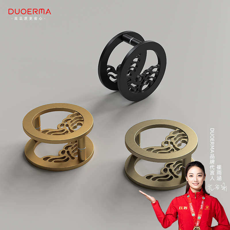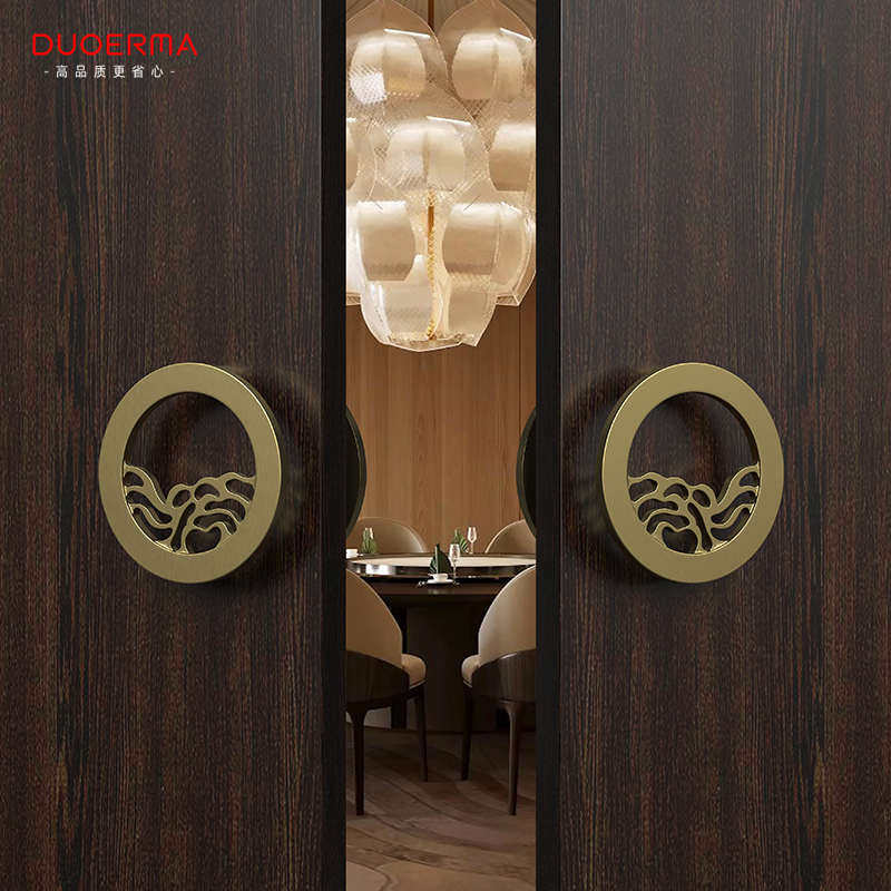 DUOERMA新款圆形铝板雕刻玻璃红金色古铜大门定制门把手拉手实木
