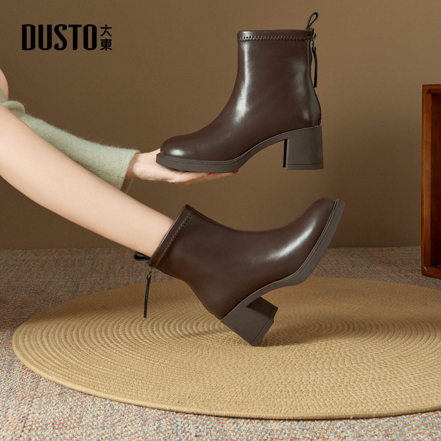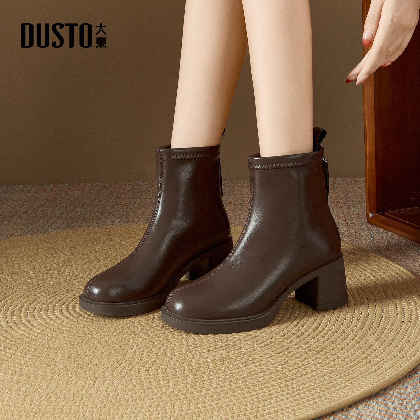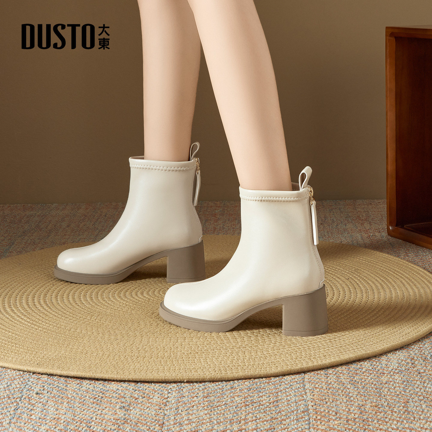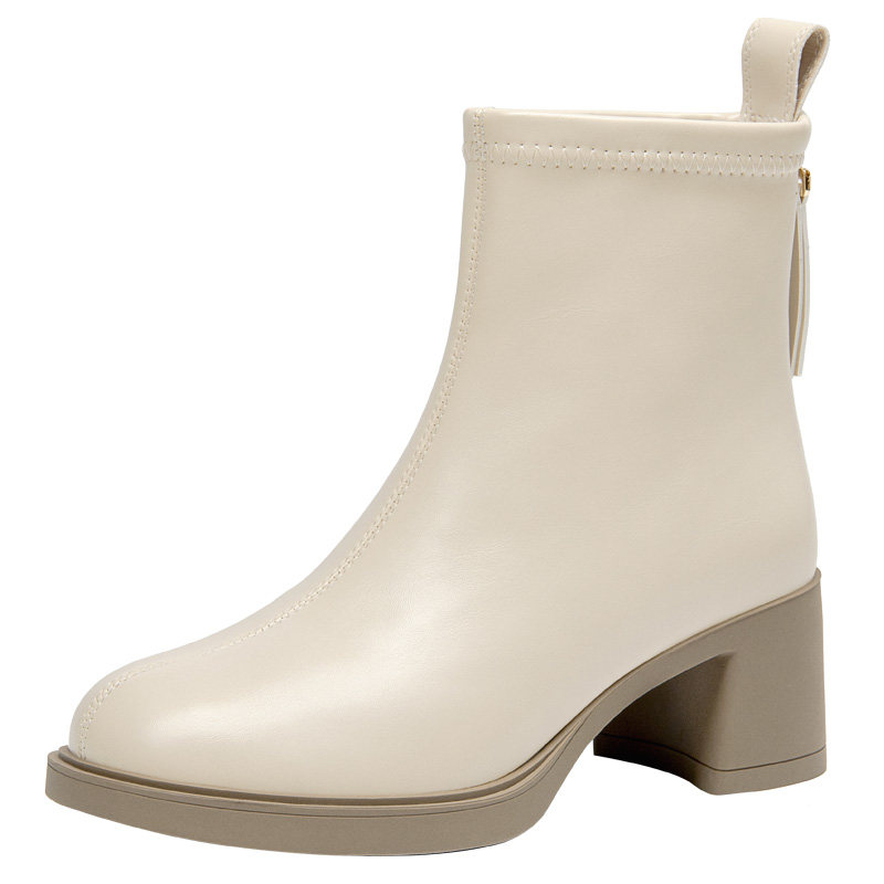 大东白色短靴女款2025新款冬季高跟靴配裙子粗跟法式小裸靴瘦瘦靴
