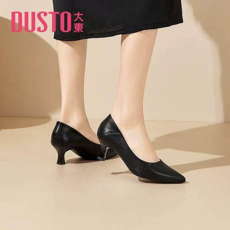 大东浅口鞋24春季新款简约高跟粗跟通勤单鞋尖头套脚女鞋