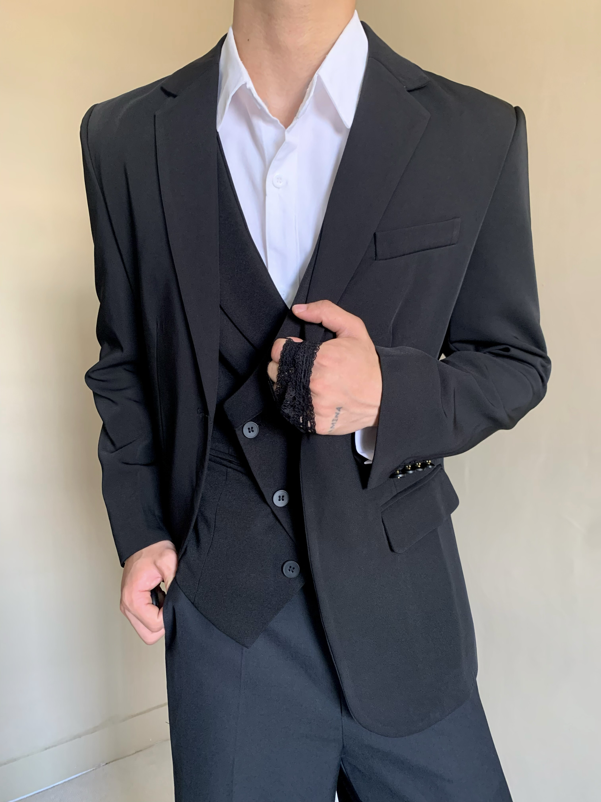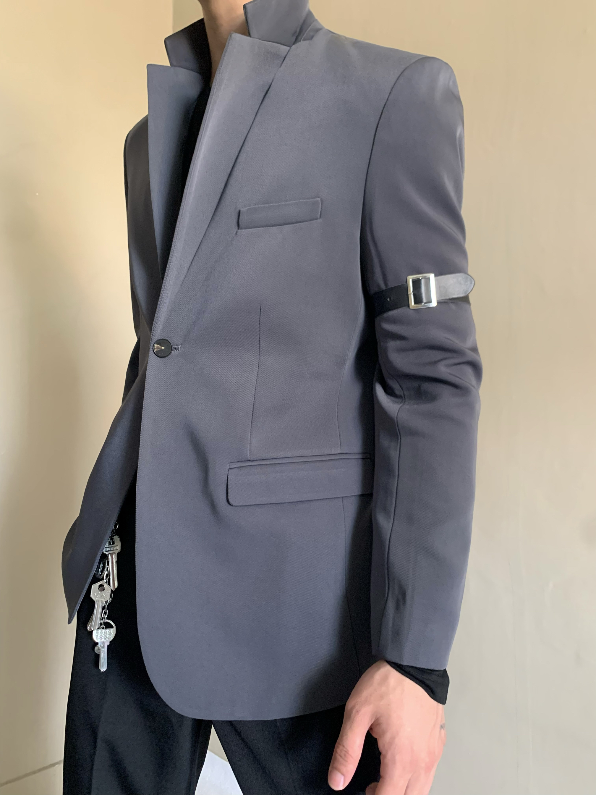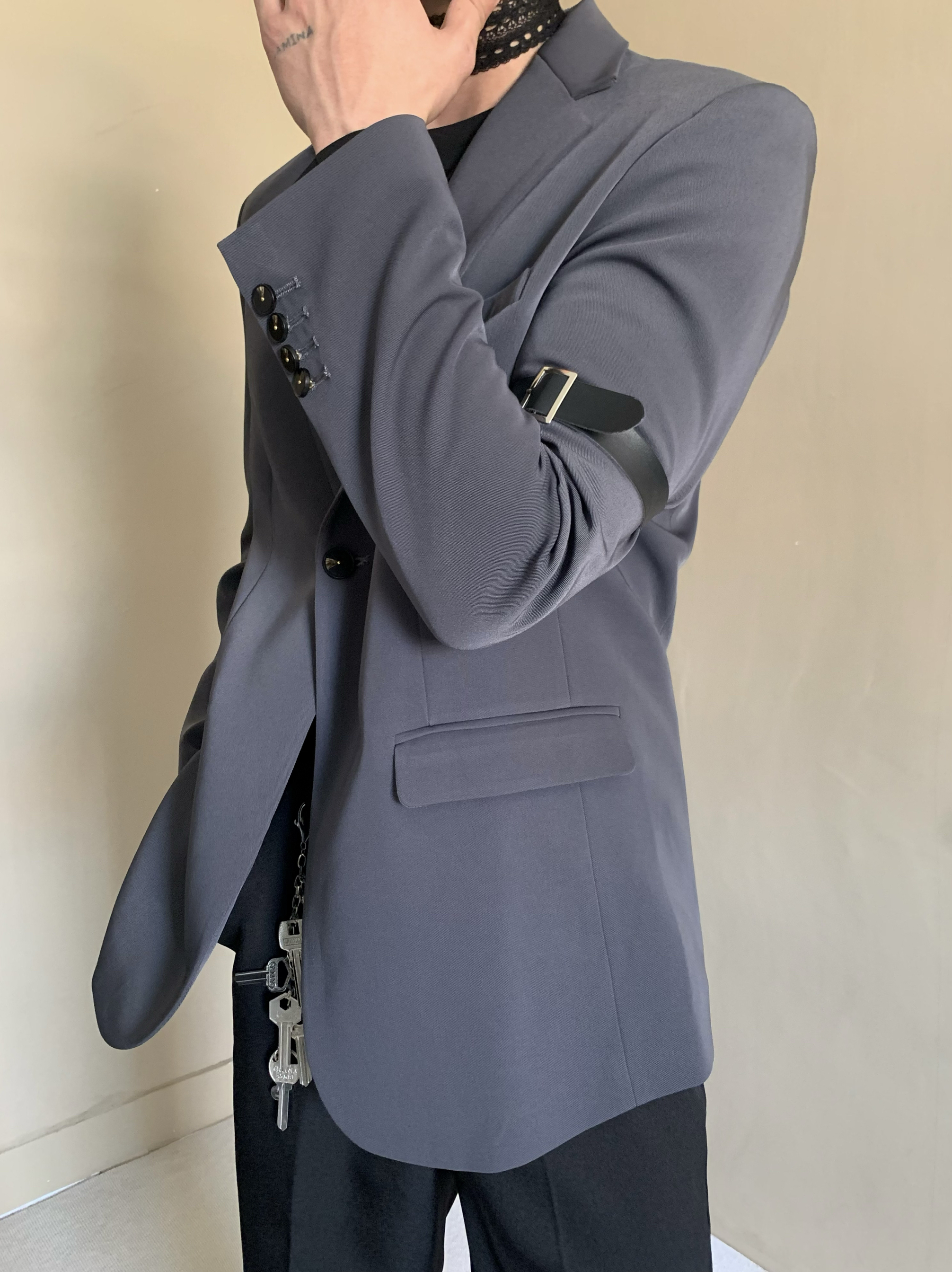 原创定制复古小众设计收腰西装外套男女中性风高级感单扣垫肩西服