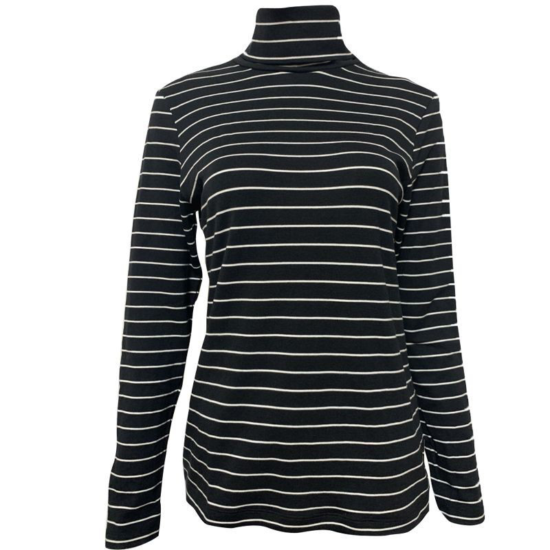 三枪秋衣女秋冬季薄内搭彩条高翻领单件保暖上衣可外穿长袖打底衫
