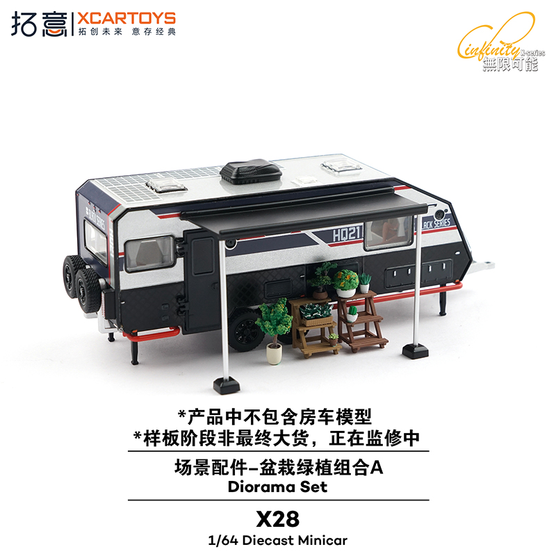 拓意1/64仿真生活人偶摆件盆栽绿植组合旅行黑系房车HQ21汽车模型