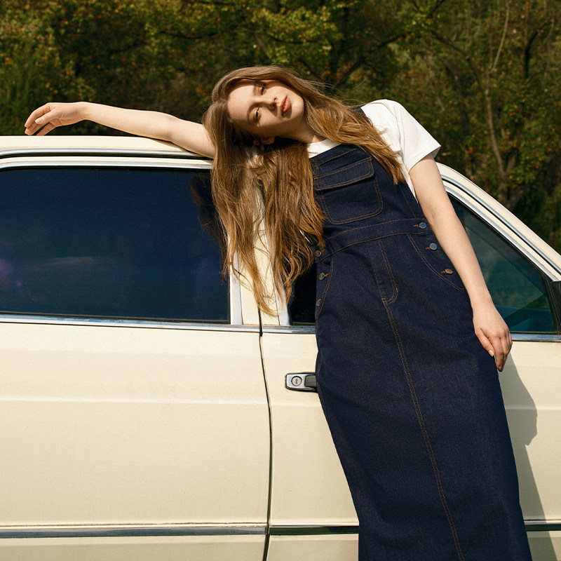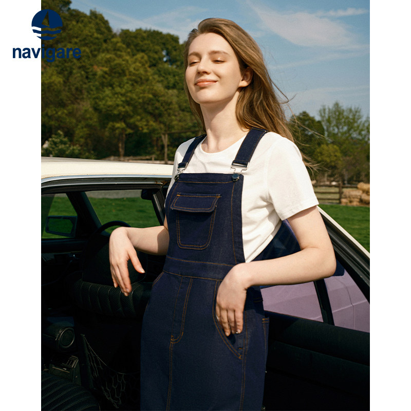 Navigare意大利小帆船复古牛仔女连衣裙25春夏新款减龄七分背带裙