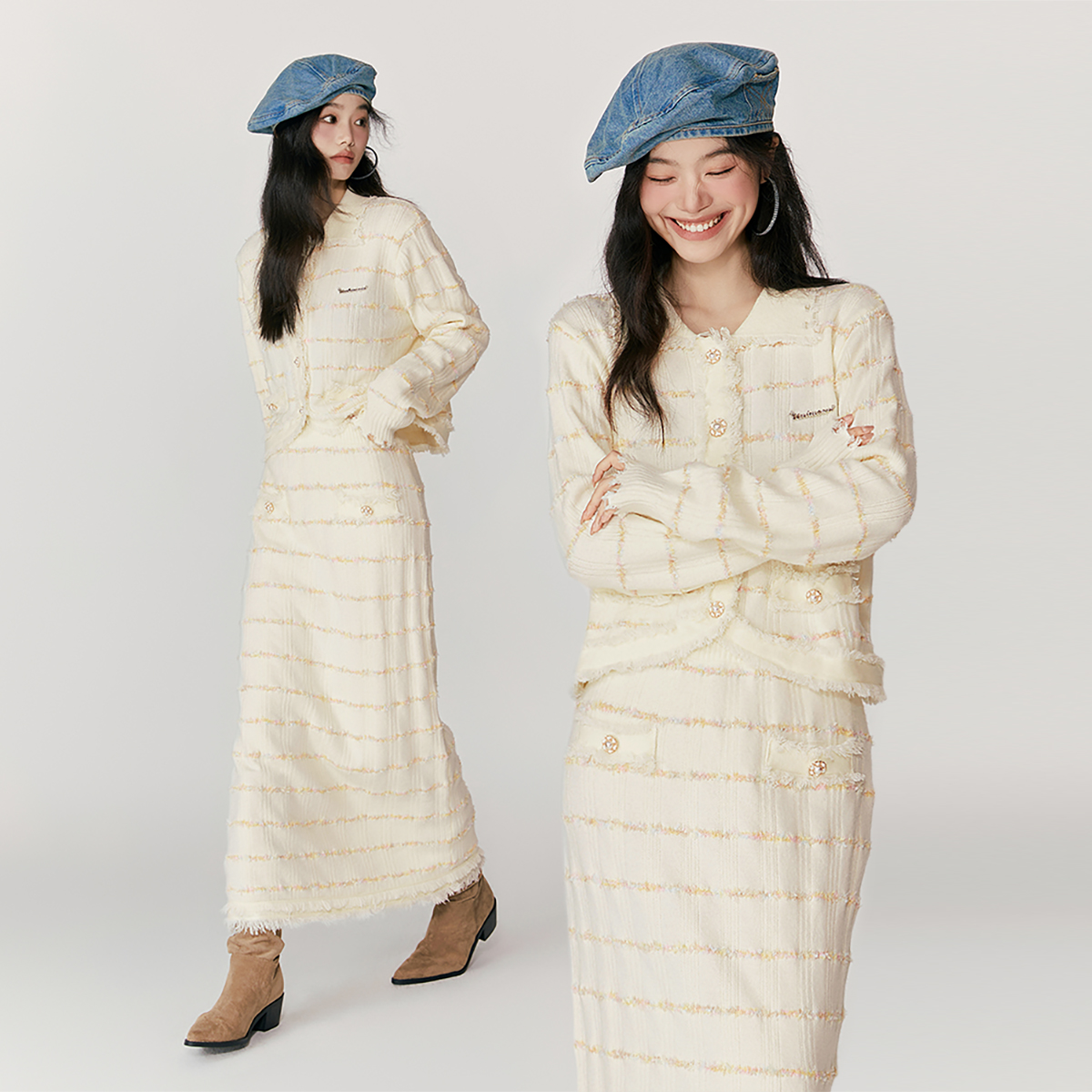 Eptison小香风外套半身裙套装