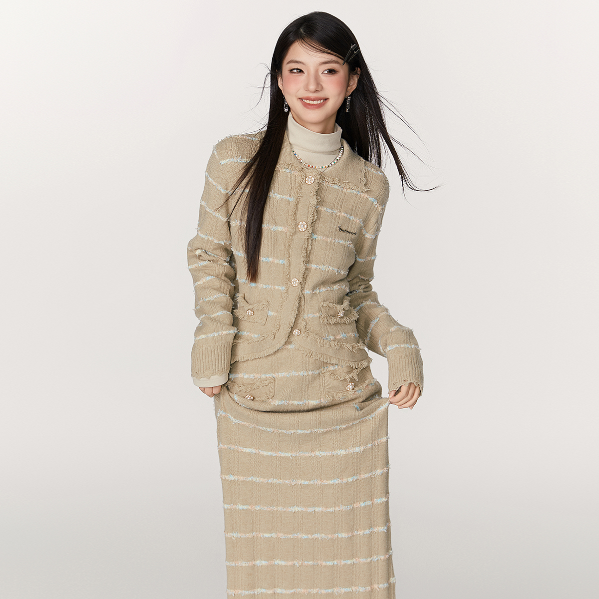 【89/件】EPTISON套装女2025冬季小香风针织开衫外套半身裙两件套