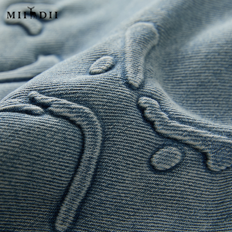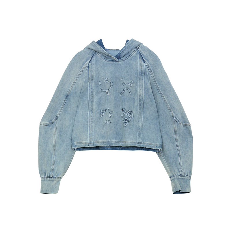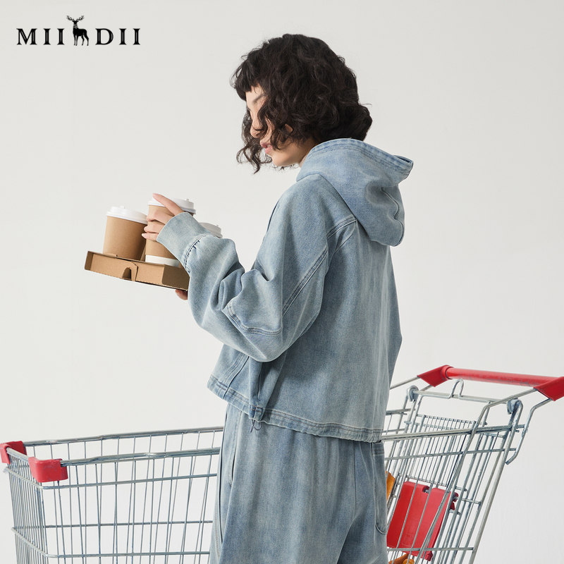 谜底牛仔连帽卫衣长袖女冬新品复古风短款特色上衣244MV1557