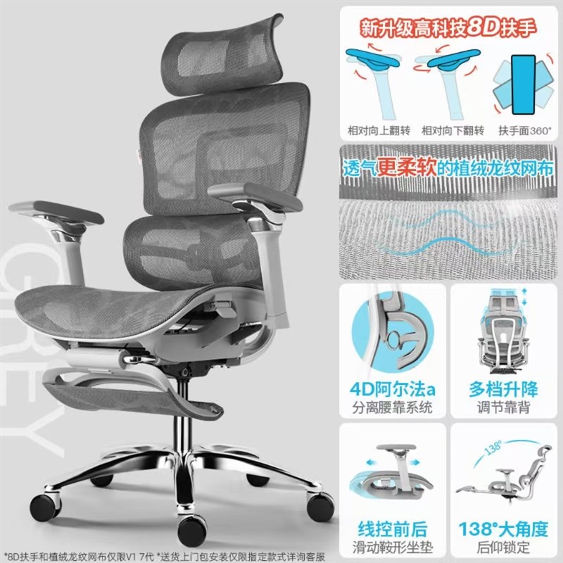 v1 7代电脑椅家用植绒网布办公椅人体工学椅可升降游戏椅学习椅子