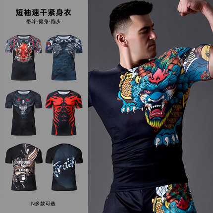 紧身衣男短袖健身衣散打格斗肌肉训练跑步速干高弹力透气排汗t恤