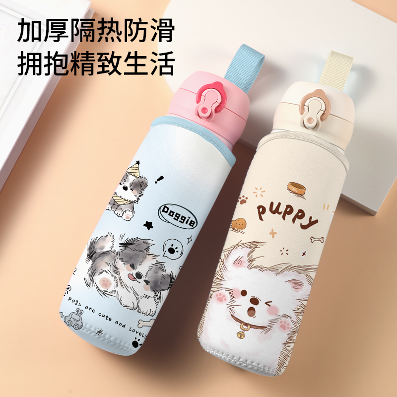 可爱卡通保温杯套便携防摔玻璃杯保护套儿童通用手提式隔热水杯套