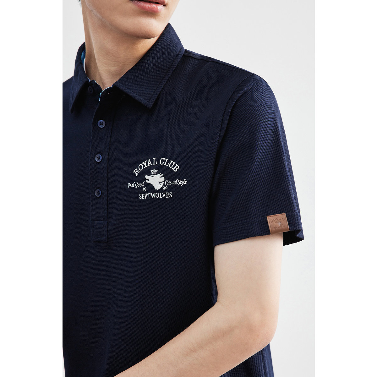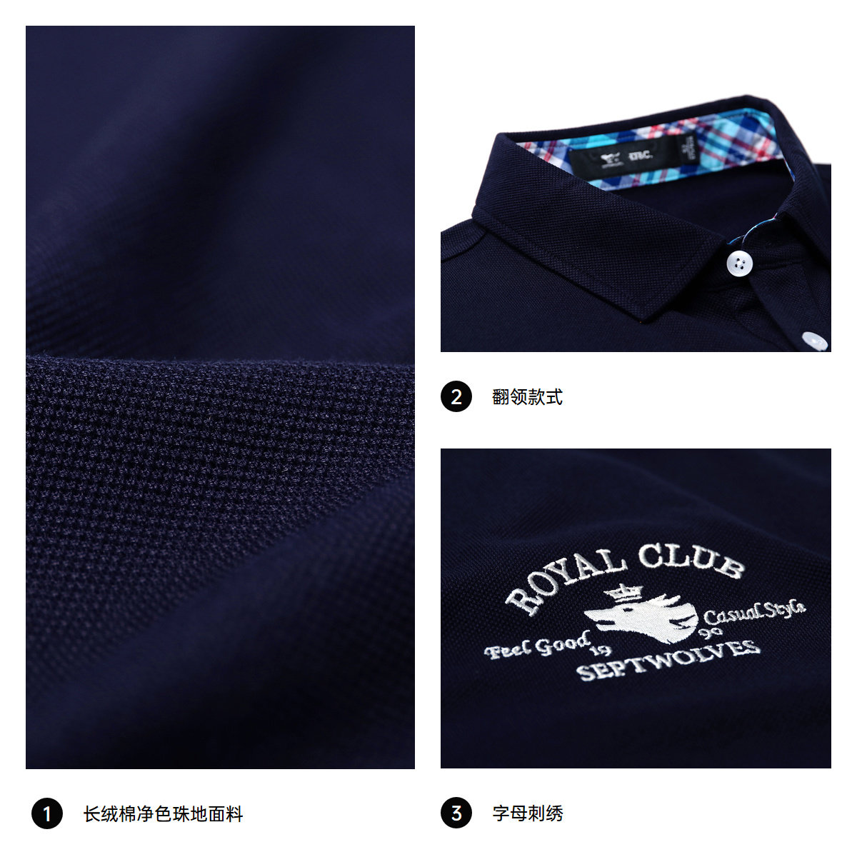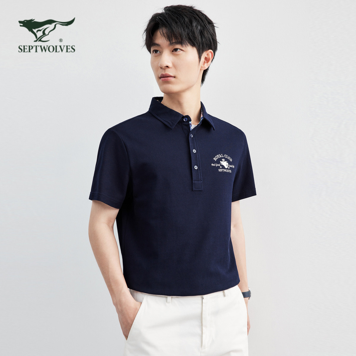 七匹狼长绒棉透气翻领短袖T恤