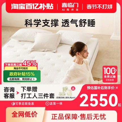 【白骑士Pro】喜临门官方主卧双人防螨席梦思乳胶透气7区弹簧床垫