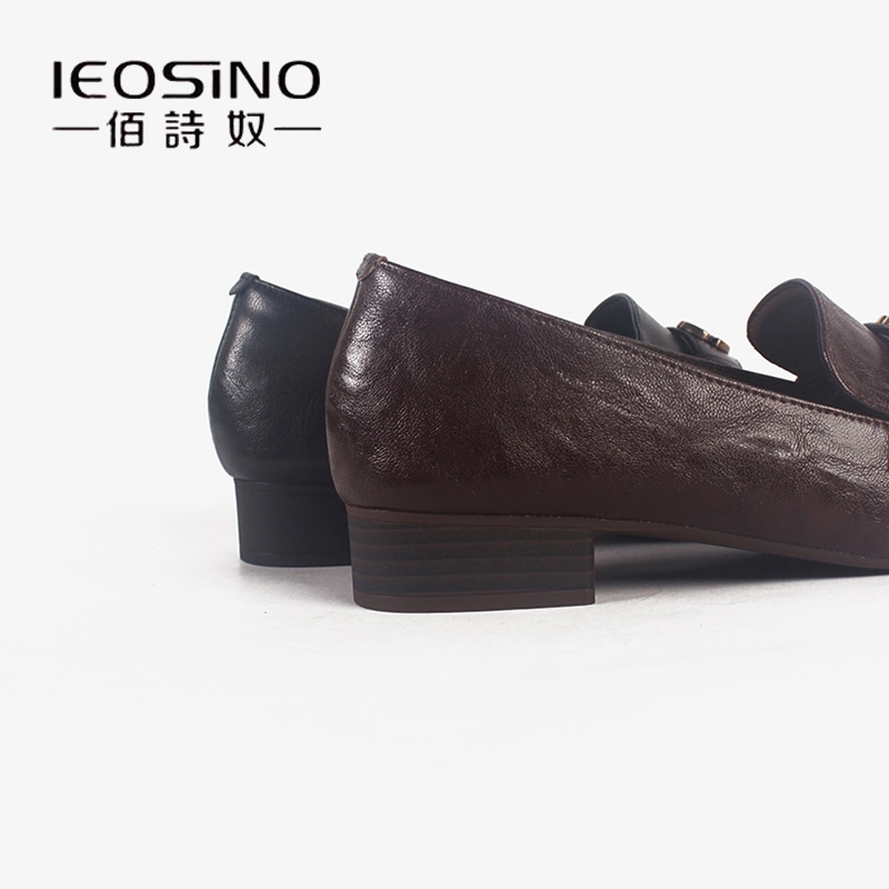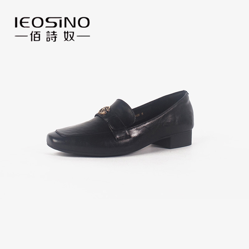 佰诗奴2024年秋季新款真皮乐福鞋羊皮粗跟方头小皮鞋工作鞋通勤女