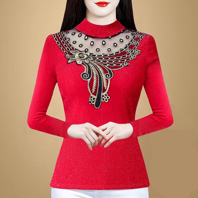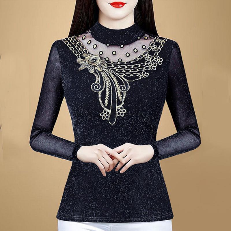 蕾丝打底衫女2025秋冬新款长袖加时尚洋气小衫网纱上衣0930e
